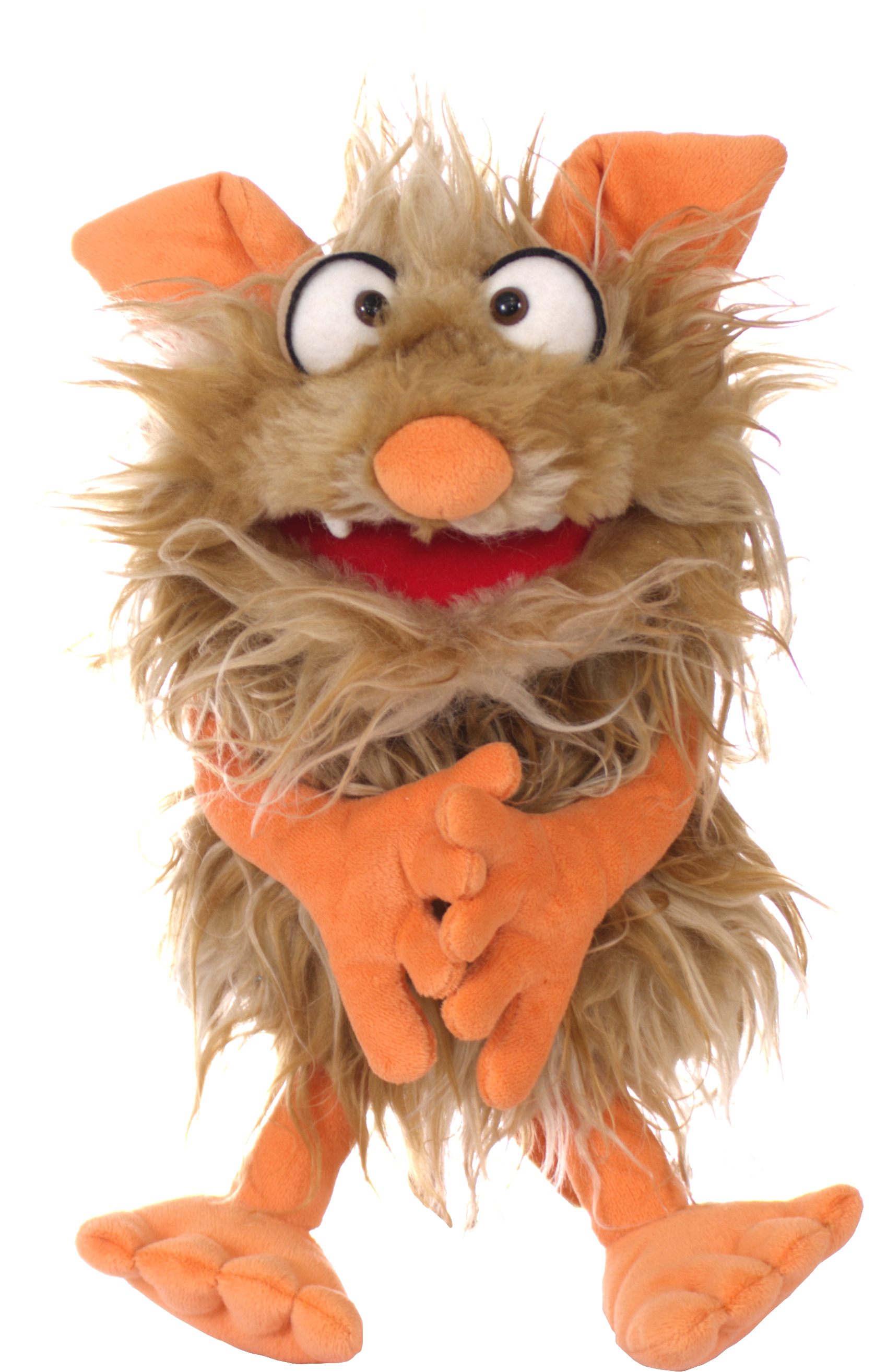 ... will einfach immer nur mit! (mit Papiertüte). Das Maul und der Kopf ist bespielbar. In der Größe von 35 cm lassen sie sich besonders gut von Kindern und Erwachsenen bespielen. Dabei werden sie im Spiel sofort lebendig. Die Handpuppen funktionieren alle nach demselben Prinzip: Der Spieler, egal ob Kind oder Erwachsener, bespielt die Puppe mit einer seiner Hände durch den Eingang unterhalb (Klappmaulprinzip).