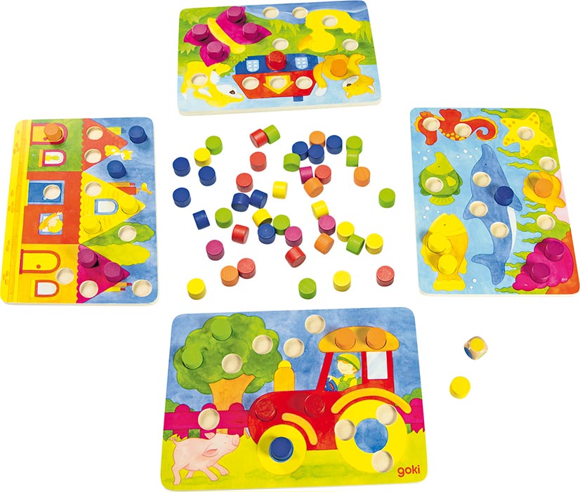 Wer vervollständigt durch Erwürfeln der passenden Farben als Erster sein eigenes Bild? Dieses Würfelspiel fördert die richtige Zuordnung von Farben.
