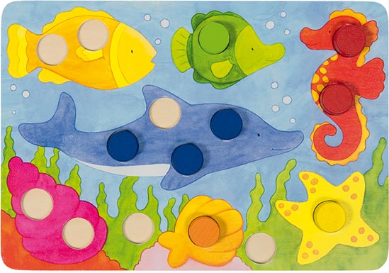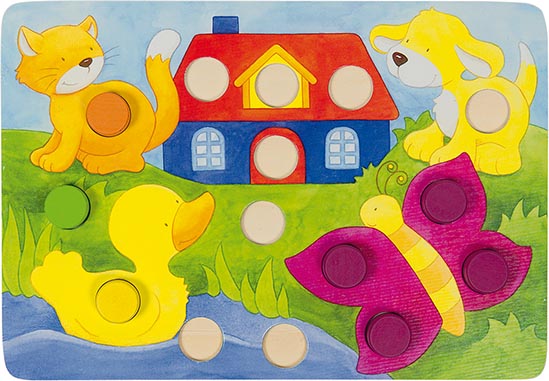 Farbwürelspiel, 20,8 x 14,5 cm, Holz