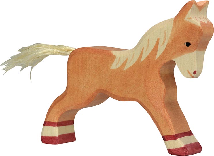 Fohlen, laufend, hellbraun, ca. 12 x 2,8 x 10 cm, Holz