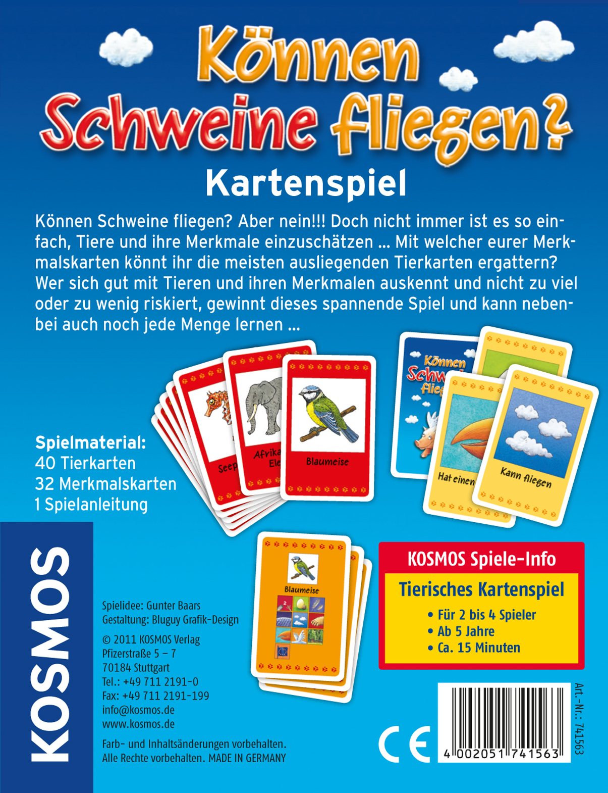 Inhalt: 40 Tierkarten, 32 Merkmalskarten, 1 Spielanleitung