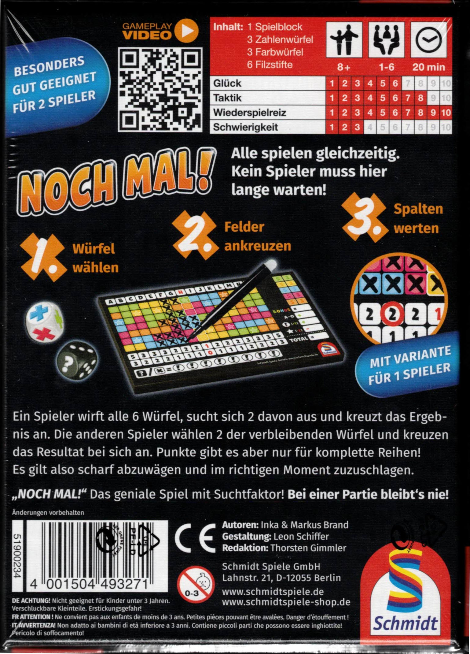 NOCH MAL!, das geniale Spiel mit Suchtfaktor! Bei einer Partie bleibt’s nie!