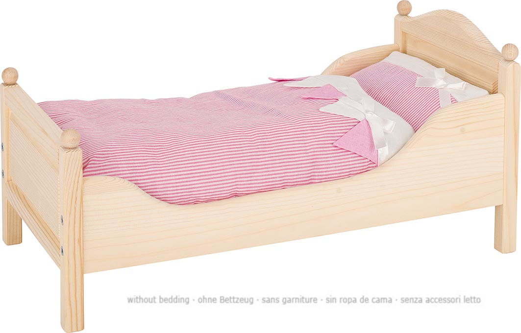 Puppenbett ca. 54,5 x 27 x 25,5 cm, Kiefer natur, Ohne Bettzeug. In dem schönen Bett steht erholsamen Puppenträumen nichts mehr im Wege.