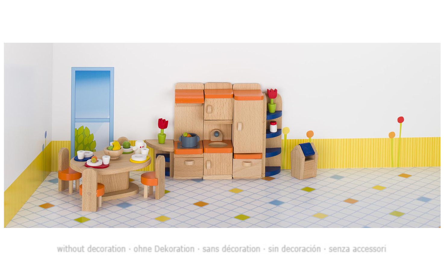 Moderne Puppenmöbel Küche 37 Teile mit detailverliebten Accessoires. Passend zu allen goki-Puppenhäusern.