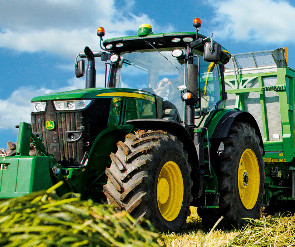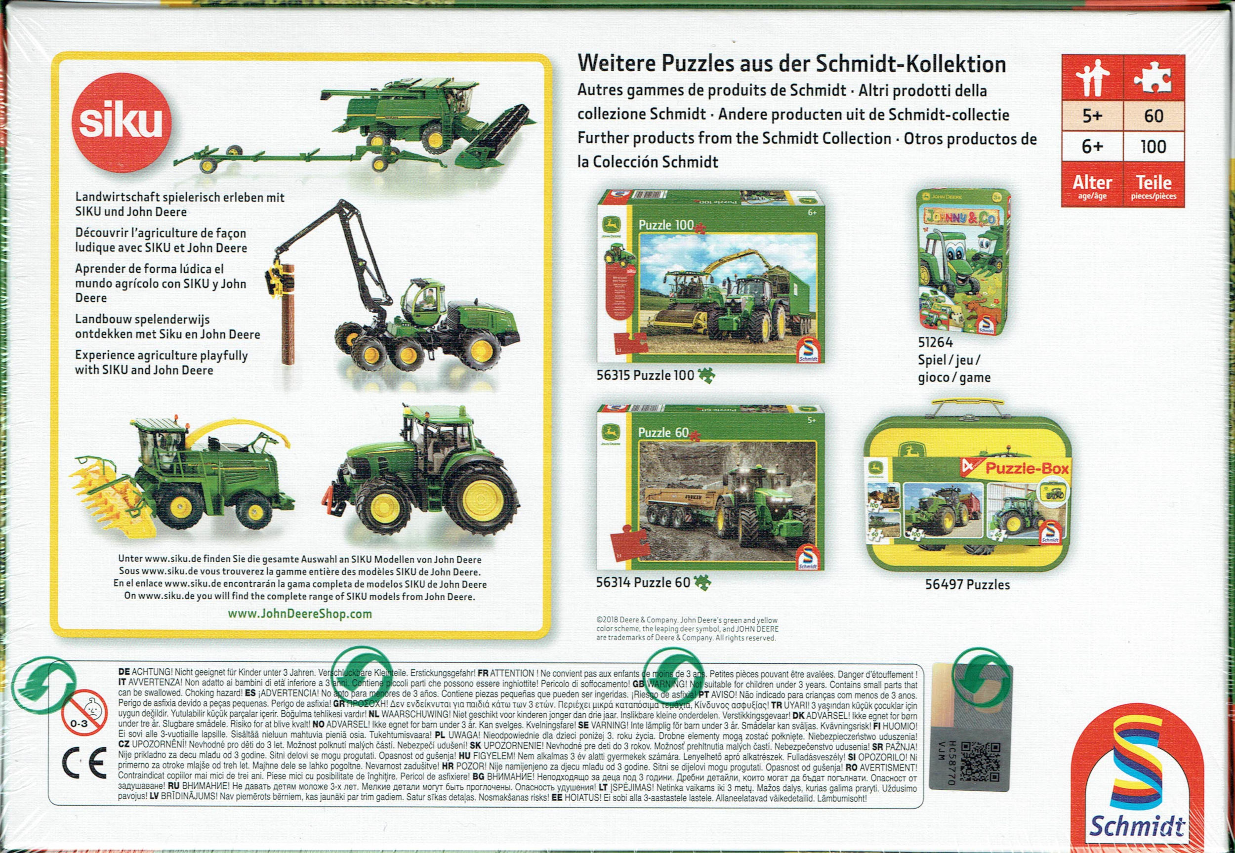 Puzzle John Deere - Traktor 7310R und 8600i Feldhäcksler 100 Teile - inkl. original SIKO Traktor 7530 - SCHMIDT SPIELE®