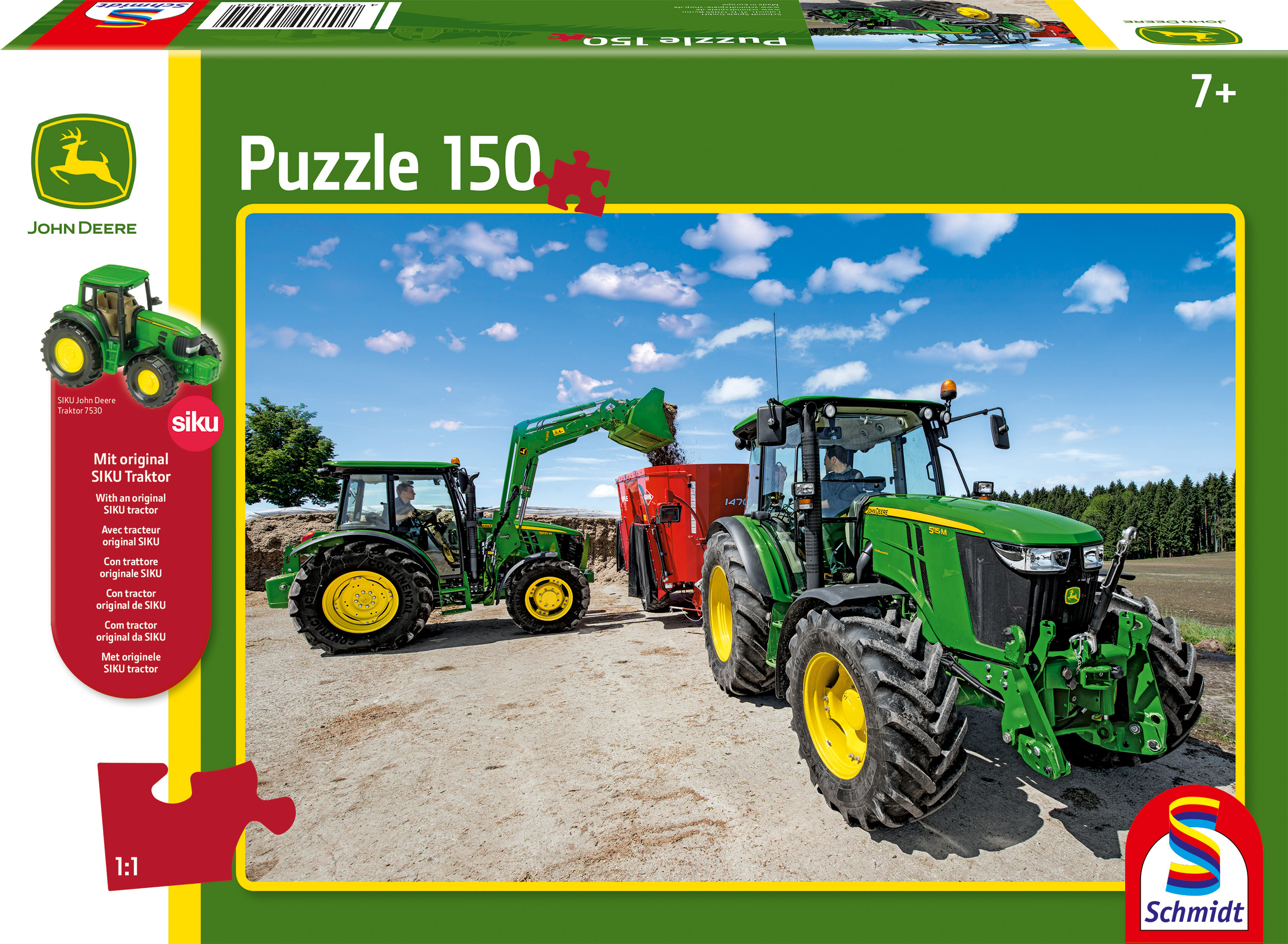 Puzzle John Deere - Traktoren der 5M Serie 150 Teile - inkl. original SIKO Traktor 7530 - SCHMIDT SPIELE®
