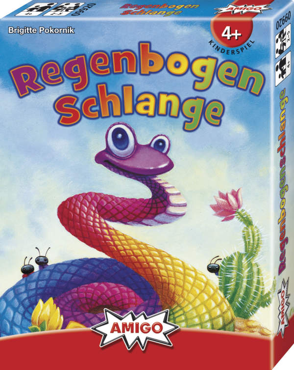 Die Farben der Schlange sind durcheinander geraten. Aufgabe der Spieler ist es, die Farben wieder zu ordnen und dabei möglichst lange Regenbogenschlangen zu bilden. Wer an der Reihe ist, zieht eine Karte vom Stapel und legt sie passend an eine andere Schlangenkarte. Rot an Rot, Blau an Blau, oder Gelb an Gelb. Eine vollständige Schlange besteht dabei immer aus einem Kopf, einem Schwanz und mindestens einem Mittelteil. Wer eine Schlange fertigstellen kann, darf sie vor sich ablegen. Das Spiel endet, wenn die letzte Karte gelegt wurde. Der Spieler mit den längsten Regenbogenschlangen gewinnt. Das beliebte Farben-Legespiel für Kinder ab 4 Jahren ist ein echter Kinderspiel-Klassiker, bei dem Kinder spielerisch Farben kennen- und unterscheiden lernen. Dieses Spiel ist "spiel gut" ausgezeichnet. (1999)© spiel gut Arbeitsausschuss Kinderspiel & Spielzeug e.V.
