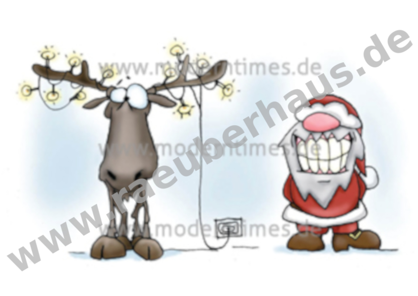 Santa & Eric - Lichterkette im Geweih, Postkarte