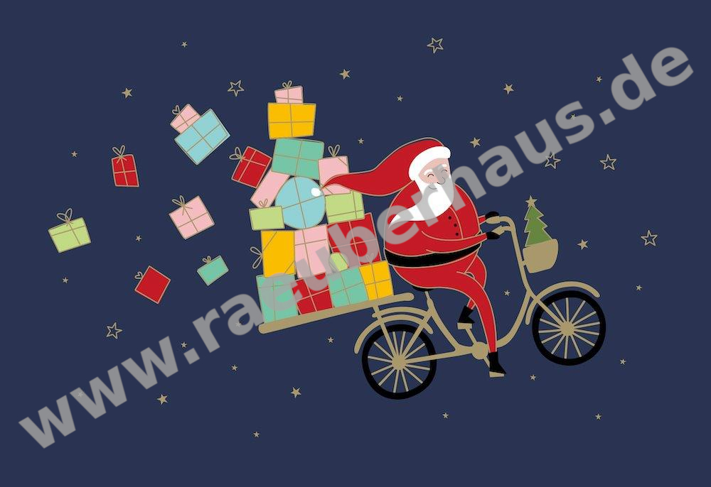 Weihnachtsmann und Fahrrad, Klappkarte mit Umschlag